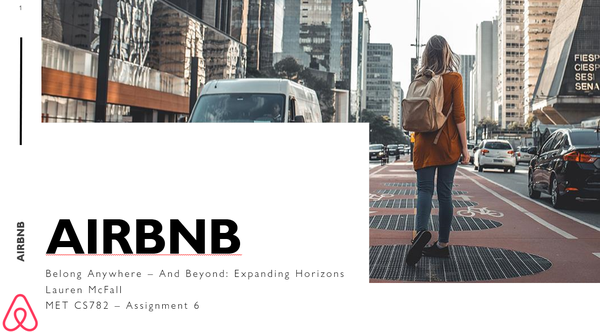 This is an assignment from BU where a company that is publicly traded, with at least 500 employees needed to be selected - here I chose Airbnb. Its business model needed to be described, Porter's 5 competitive forces and challenges needed to be considered, competitive strategies and approaches needed to laid out based on the top 2 most significant ones, a business model evolution needed to be thought out, and what the best IT-supported proposal was.